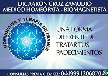 Consultorio Médico Dr. Aarón Cruz Zamudio le ofrece consulta médica homeopática unicista, así como diversas terapias alternativas tales como: Par Biomagnético, Thetahealing, Flores de Bach, Ear Coning (Conoterapia), Biodescodificación, Auriculoterapia, Reflexología, Luz polarizada y naturopatía.