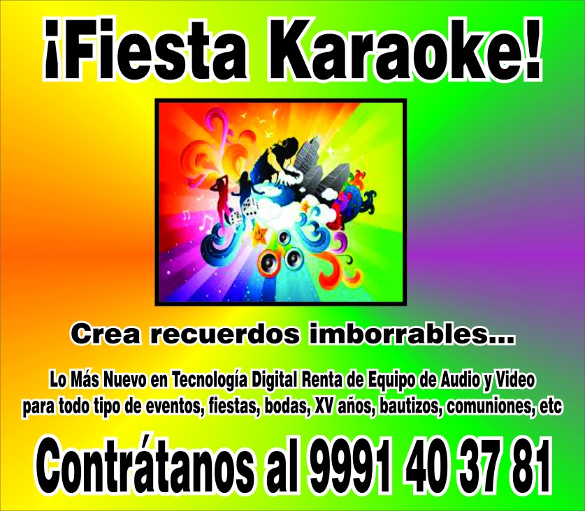 Ay Karaoke!<br /> El mejor Karaoke para sus fiestas, contamos con: 15000 mil pistas de Karaoke, Musica, Videos, micrófonos profesionales, equipo de audio profesional, pantalla de 32%u201D.<br />