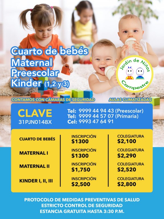 CONTAMOS CON CUARTO DE BEBES A PARTIR DE 3 MESES, MATERNALES, PREESCOLAR, PRIMARIA Y SECUNDARIA.