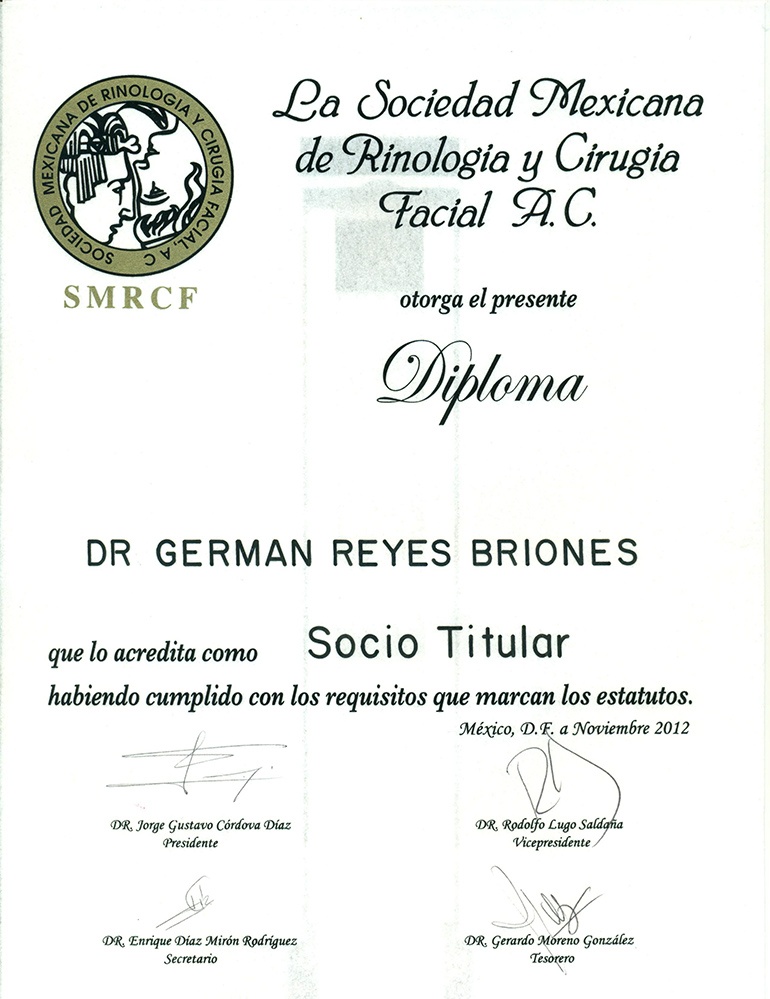 Miembro de la Sociedad Mexicana de Rinologia y Cirugia Facial.