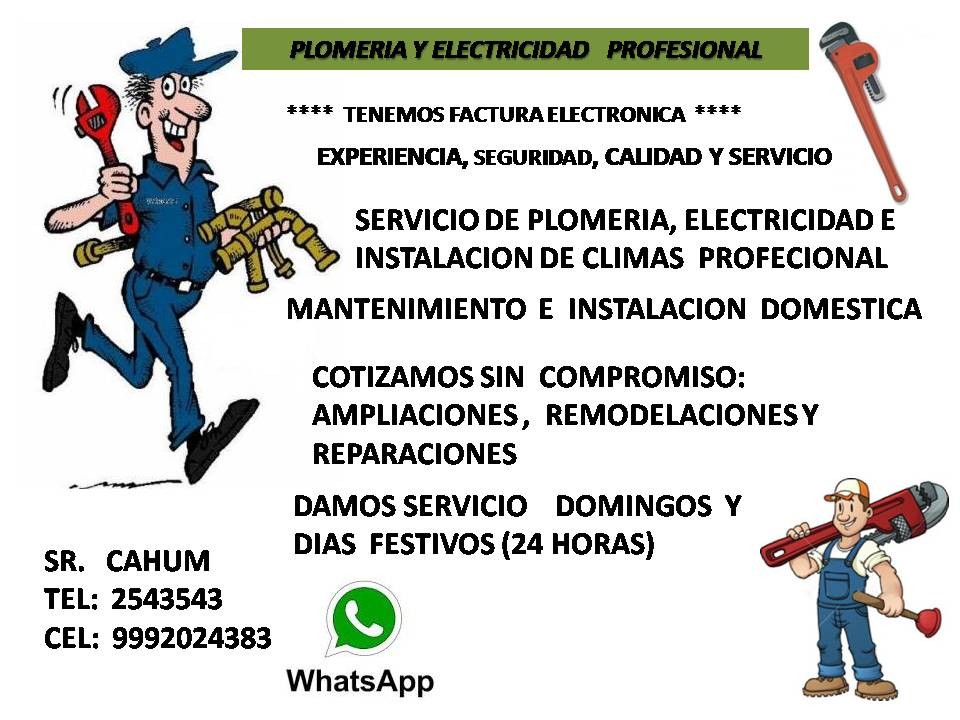 Damos servicio de plomeria, electricidad domestica y comercial, instalando y damos mantenimiento a climas tipo split. Trabajos serios y economicos.