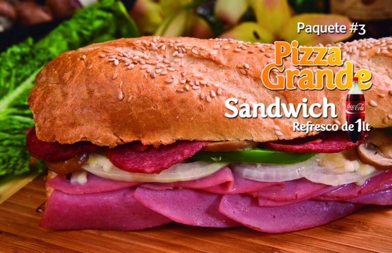 1 Pizza grande de 3 ingredientes + Sandwich + Refresco de 1lt