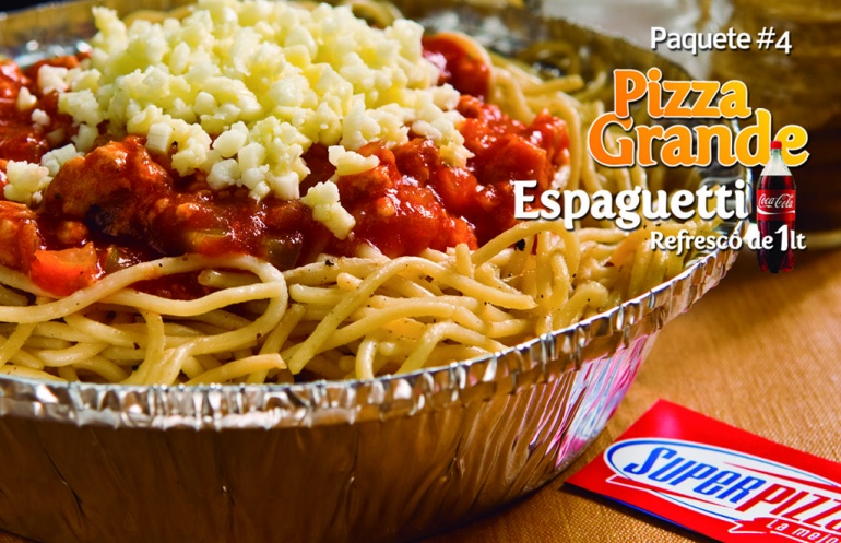 1 Pizza grande de 3 ingredientes + Espaguetti + Refresco de 1lt