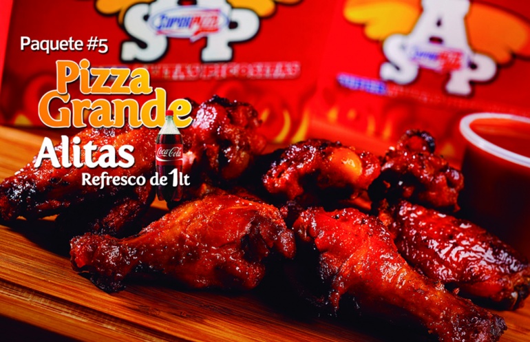 1 Pizza grande de 3 ingredientes + Alitas + Refresco de 1lt
